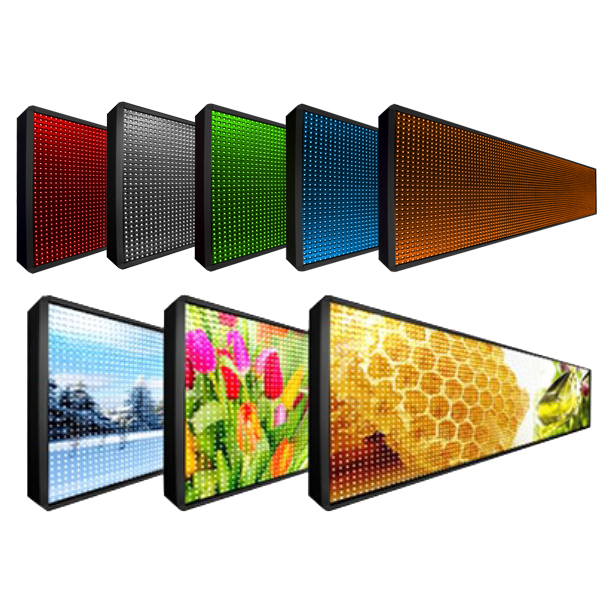 Современные светодиодные табло позволяют не только воспроизводить текст, но и транслировать различные виды анимации, проигрывать видеоролики, отображать температуру и влажность воздуха, время и дату.