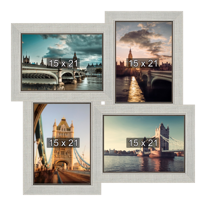 43 x 43 см. / 4 рамки 15 х 21 см., 56 x 42 см. / 4 рамки 10 х 15 см. и 1 рамка 20 х 30 см., 58 x 30 см. / 8 рамок 10 х 15 см., 58 x 53 см. / 8 рамок 10 х 15 см., 65 x 54 см. / 5 рамок 10 х 15 см., 2 рамки 15 х 21 см и 1 рамка 20 х 30 см., 65 x 62 см. / 6 рамок 10 х 15 см. и 2 рамки 20 х 30 см.