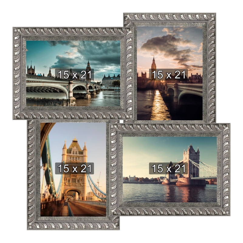 | Размер / кол-во фото | 43 x 43 см. / 4 рамки 15 х 21 см., 56 x 42 см. / 4 рамки 10 х 15 см. и 1 рамка 20 х 30 см., 58 x 30 см. / 8 рамок 10 х 15 см., 58 x 53 см. / 8 рамок 10 х 15 см., 65 x 54 см. / 5 рамок 10 х 15 см., 2 рамки 15 х 21 см и 1 рамка 20 х 30 см., 65 x 62 см. / 6 рамок 10 х 15 см. и 2 рамки 20 х 30 см. |