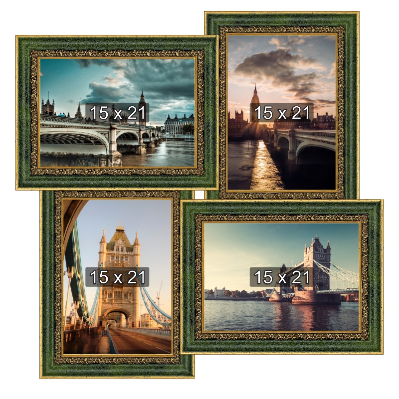 43 x 43 см. / 4 рамки 15 х 21 см., 56 x 42 см. / 4 рамки 10 х 15 см. и 1 рамка 20 х 30 см., 58 x 30 см. / 8 рамок 10 х 15 см., 58 x 53 см. / 8 рамок 10 х 15 см., 65 x 54 см. / 5 рамок 10 х 15 см., 2 рамки 15 х 21 см и 1 рамка 20 х 30 см., 65 x 62 см. / 6 рамок 10 х 15 см. и 2 рамки 20 х 30 см.