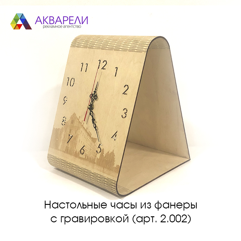 Настольные часы из фанеры с лазерной гравировкой (арт. 2.002)