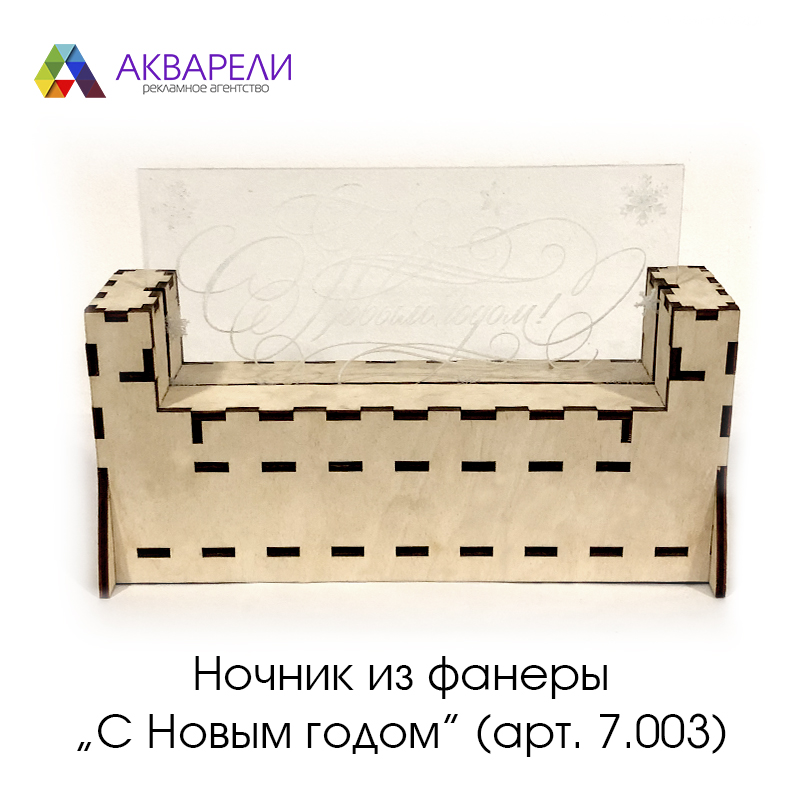 Ночник «С Новым годом» из фанеры и оргстекла с подсветкой. Цвета подсветки меняются автоматически.