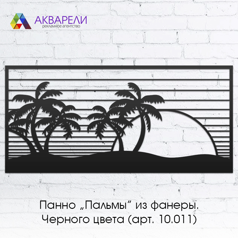 Панно с изображением пальм на фоне заката. Из фанеры окрашенной в чёрный цвет
