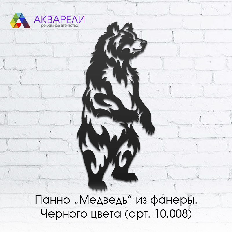 Панно с изображением панды из фанеры окрашенной в чёрный цвет
