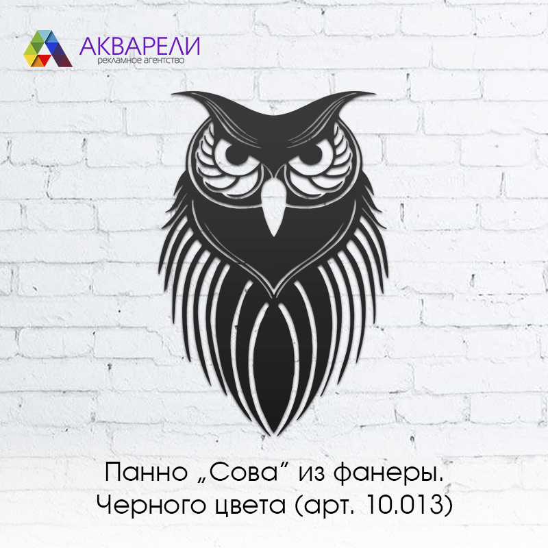 Панно с изображением совы из фанеры окрашенной в чёрный цвет