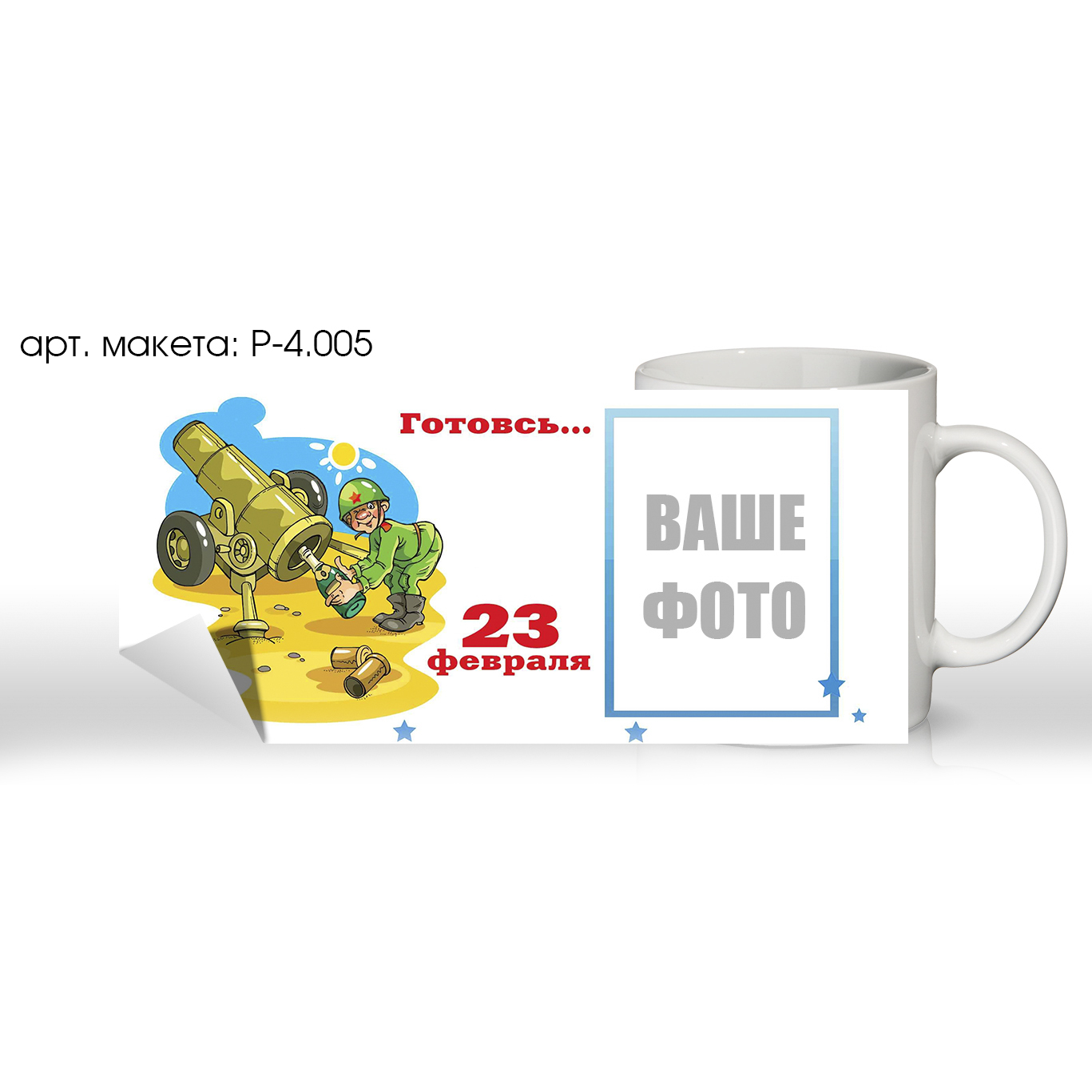 Печать на кружке. Тема: «23 Февраля». С фото. (арт. P-4.005)