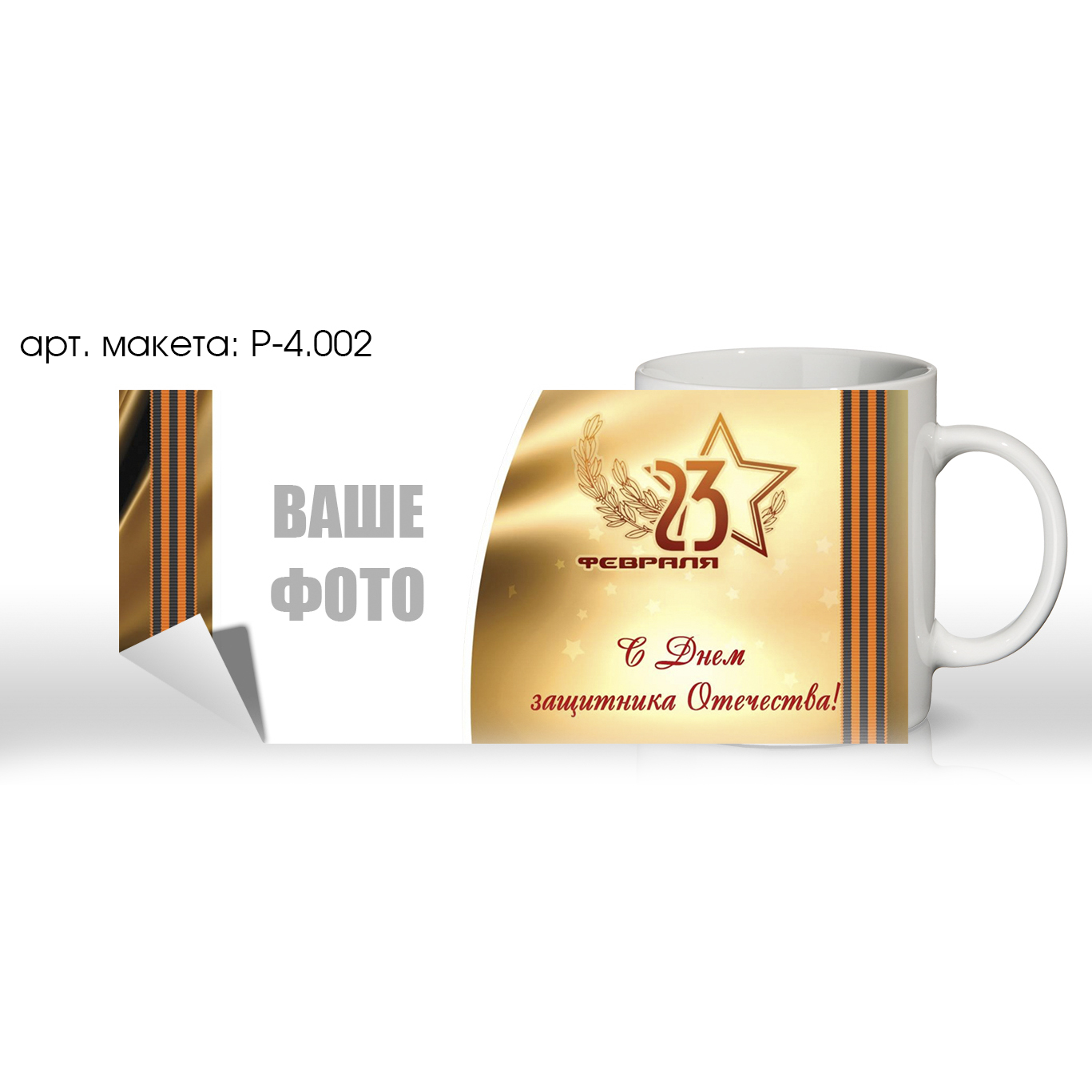 Печать на кружке. Тема: «23 Февраля». С фото. (арт. P-4.002)
