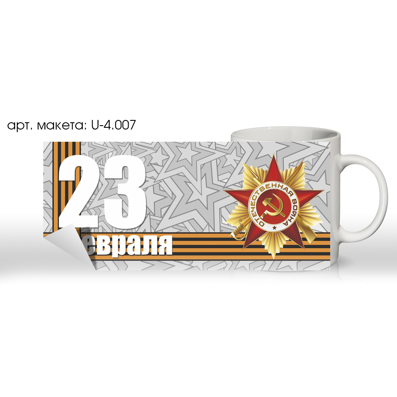 Печать на кружке. Тема: «23 Февраля». Универсальная. (арт. U-4.007)
