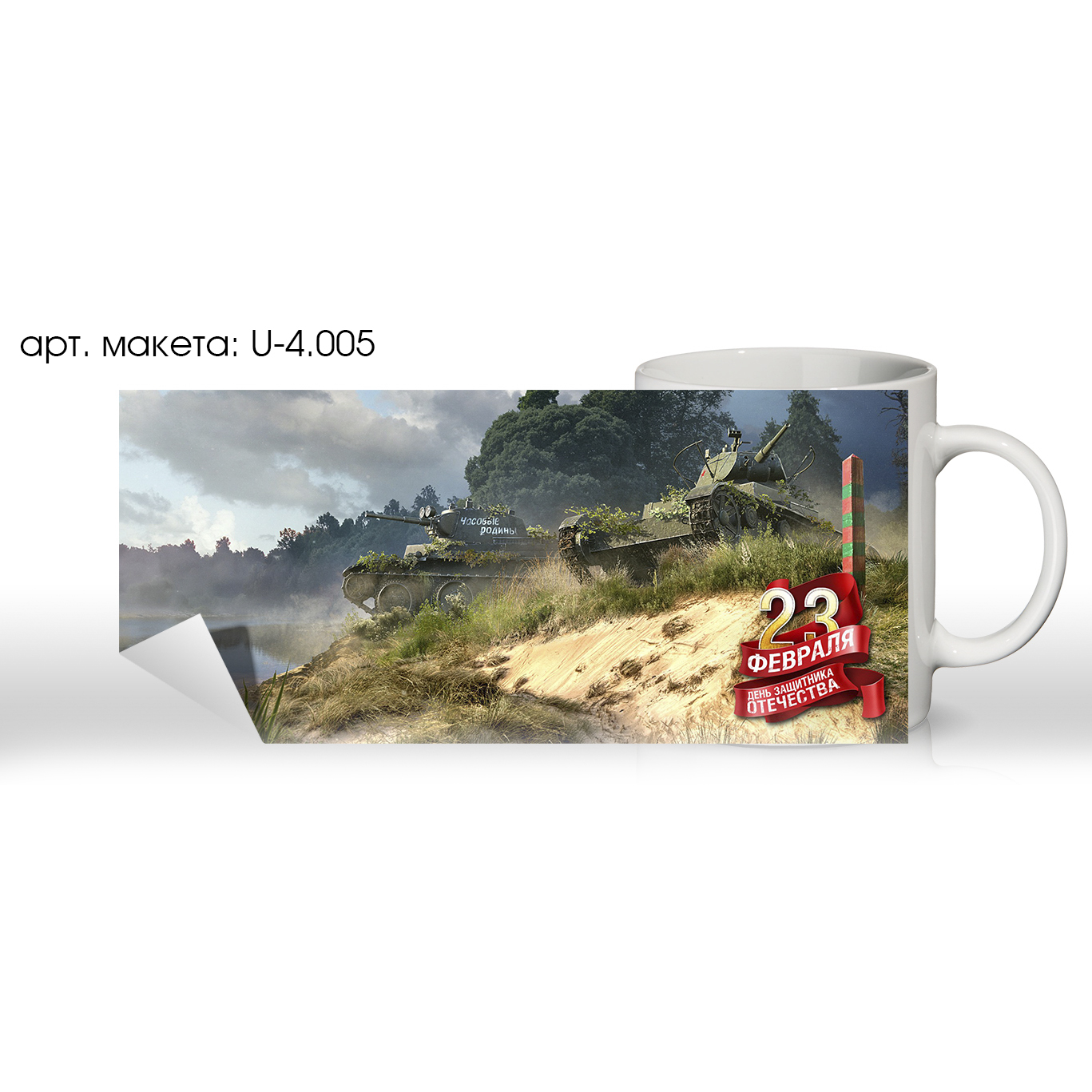 Печать на кружке. Тема: «23 Февраля». Универсальная. (арт. U-4.005)