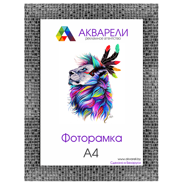 В стоимость входит стекло 2мм, задник из ДВП либо картона, металлический подвес «Clip over», позволяющий вешать рамку в вертикальном и горизонтальном положении.