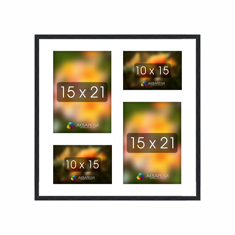 • 40 х 40 см. / 2 фото 15 х 21 см. + 2 фото 10 х 15 см.