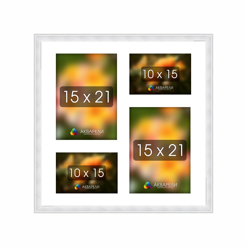 40 х 19 см. / 3 фото 10 х 15 см., 40 х 40 см. / 2 фото 15 х 21 см. + 2 фото 10 х 15 см., 44 х 40 см. / 7 фото 10 х 15 см., 53 х 35 см. / 6 фото 10 х 15 см., 60 х 30 см. / 3 фото 15 х 21 см.