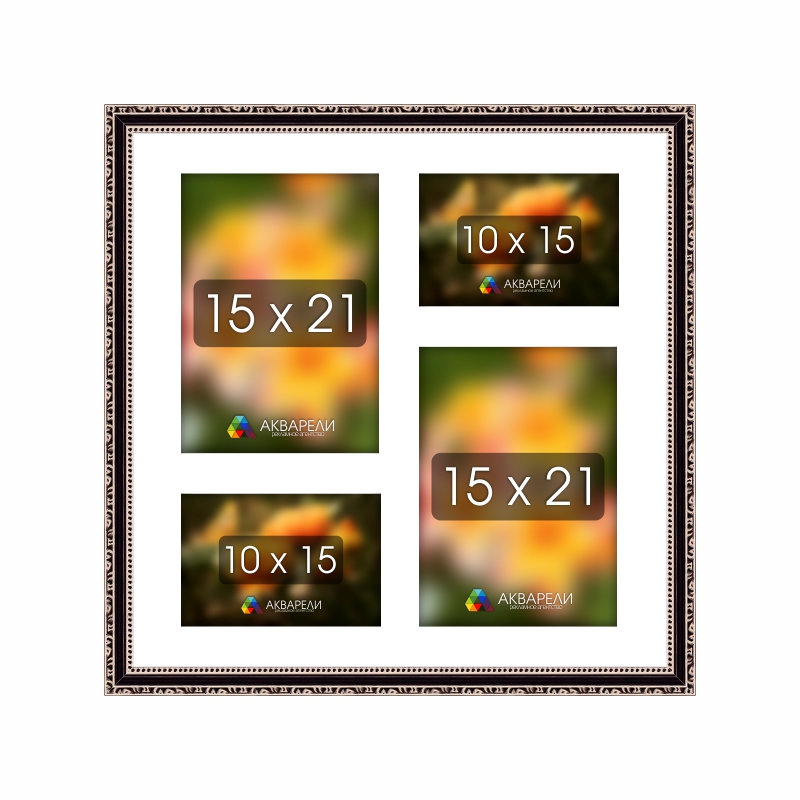 • 40 х 40 см. / 2 фото 15 х 21 см. + 2 фото 10 х 15 см.