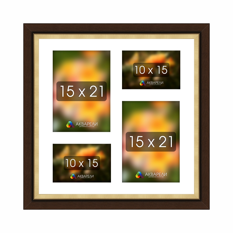 | Размер / кол-во фото | 40 х 19 см. / 3 фото 10 х 15 см., 40 х 40 см. / 2 фото 15 х 21 см. + 2 фото 10 х 15 см., 44 х 40 см. / 7 фото 10 х 15 см., 53 х 35 см. / 6 фото 10 х 15 см., 60 х 30 см. / 3 фото 15 х 21 см. |