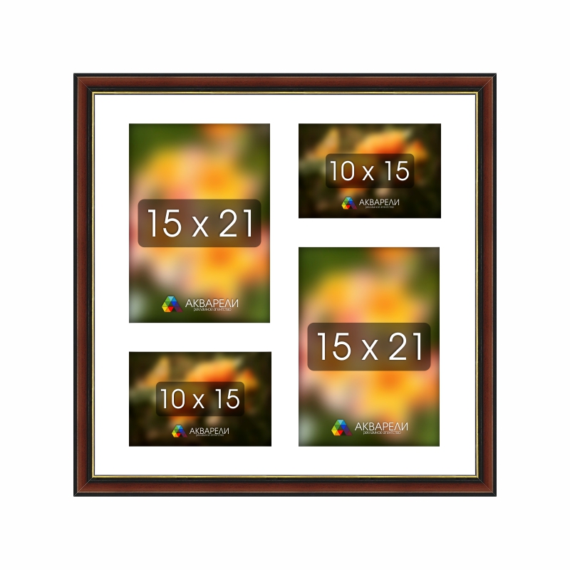 40 х 19 см. / 3 фото 10 х 15 см., 40 х 40 см. / 2 фото 15 х 21 см. + 2 фото 10 х 15 см., 44 х 40 см. / 7 фото 10 х 15 см., 53 х 35 см. / 6 фото 10 х 15 см., 60 х 30 см. / 3 фото 15 х 21 см.