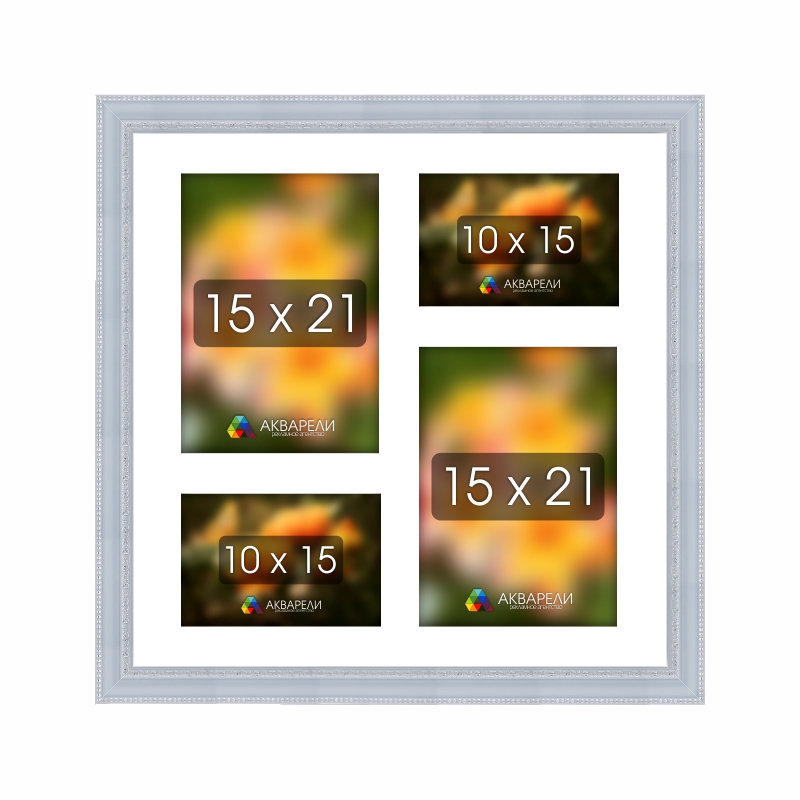 | Размер / кол-во фото | 40 х 19 см. / 3 фото 10 х 15 см., 40 х 40 см. / 2 фото 15 х 21 см. + 2 фото 10 х 15 см., 44 х 40 см. / 7 фото 10 х 15 см., 53 х 35 см. / 6 фото 10 х 15 см., 60 х 30 см. / 3 фото 15 х 21 см. |