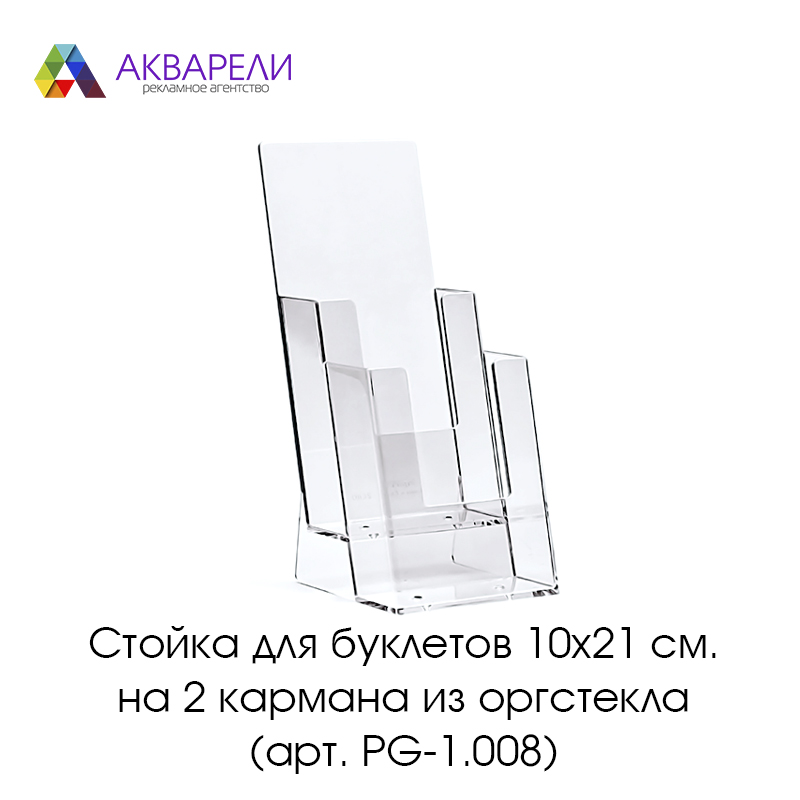 Стойка для буклетов 10х21 см. на 2 кармана из оргстекла (арт. PG-1.008)