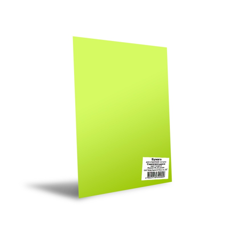Фотобумага цветная, матовая, самоклеящаяся, зелёная, A4, 80г/м², 20 л.