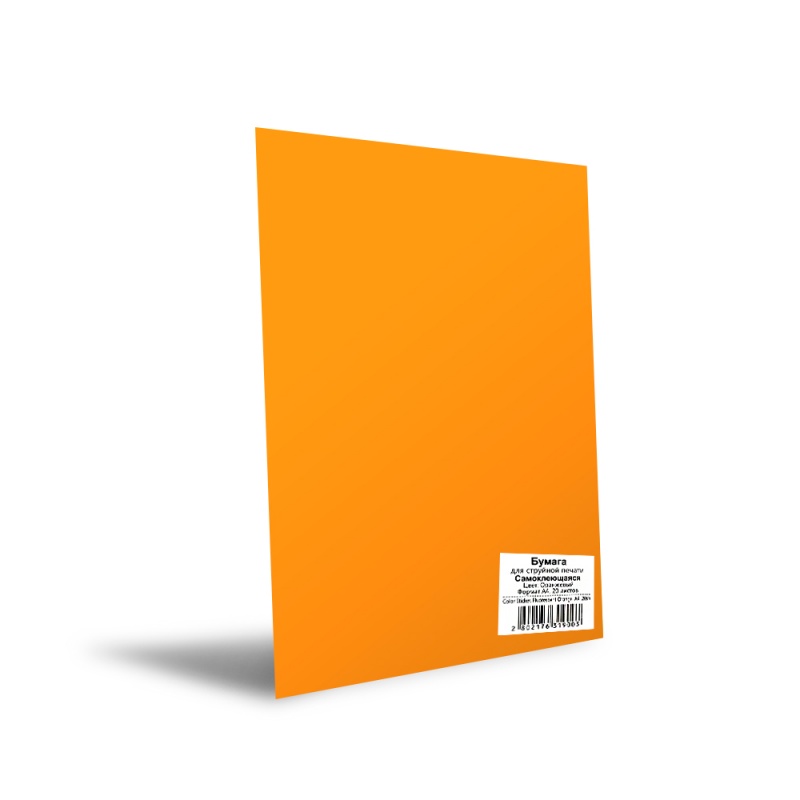 Фотобумага цветная, матовая, самоклеящаяся, оранжевая, A4, 80г/м², 20 л.