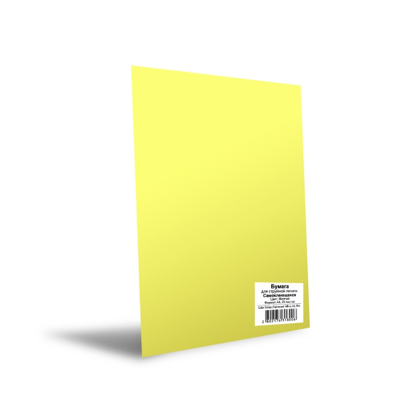 Фотобумага цветная, матовая, самоклеящаяся, жёлтая, A4, 80г/м², 20 л.