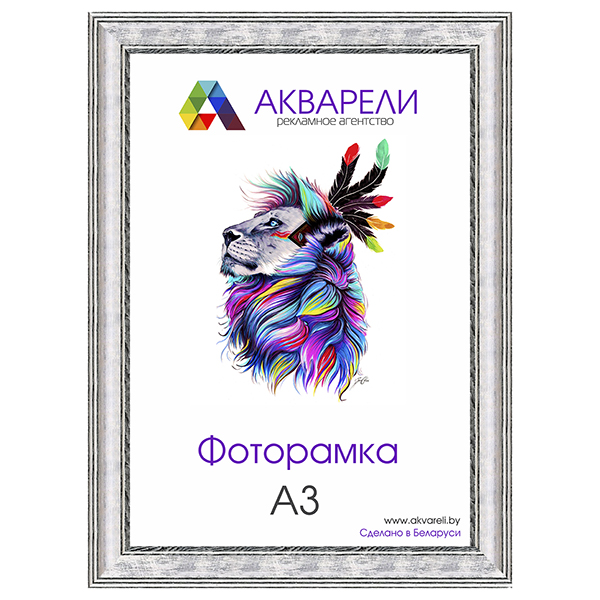 В стоимость входит стекло 2мм, задник из ДВП либо картона, металлический подвес «Clip over», позволяющий вешать рамку в вертикальном и горизонтальном положении.