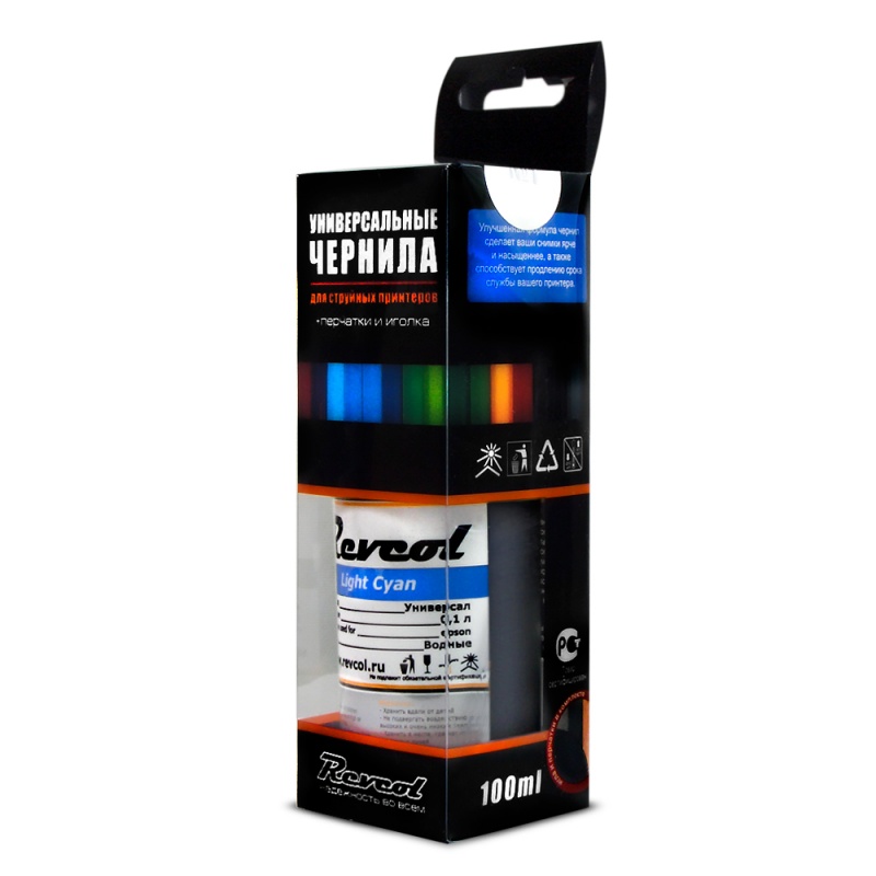 Чернила в удобной упаковке, с европодвесом, в комплекте перчатки и тупая игла 100 мм. Подходят ко всем моделям струйных принтеров Epson, кроме тех в которых используется больше шести цветов