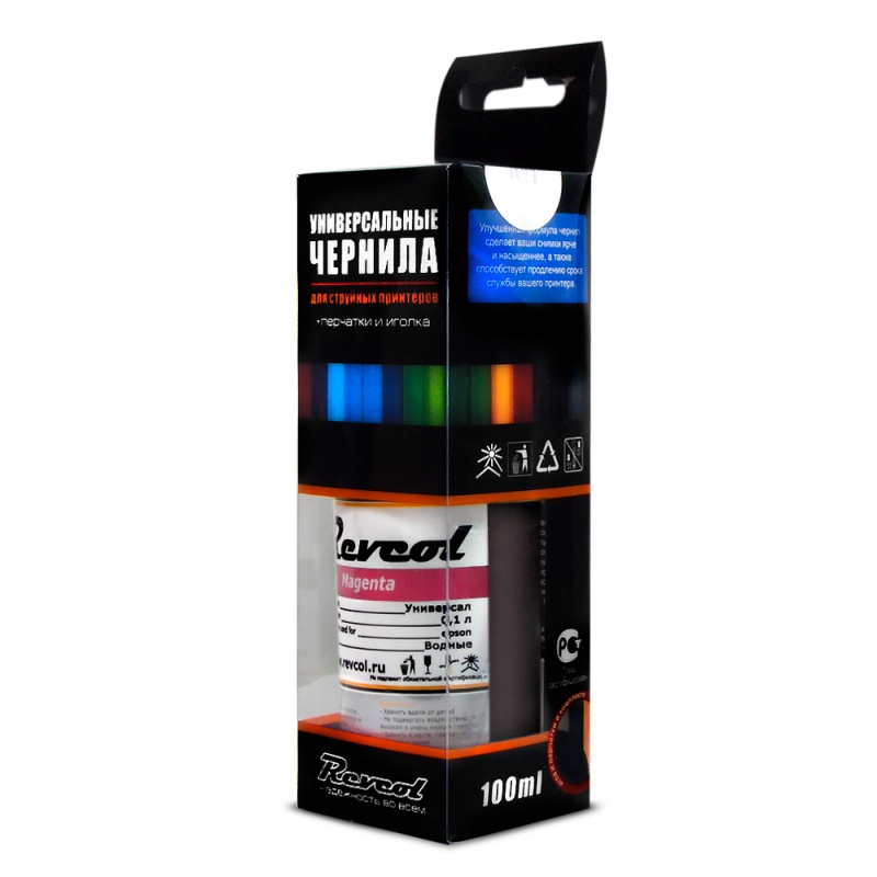 Чернила в удобной упаковке, с европодвесом, в комплекте перчатки и тупая игла 100 мм. Подходят ко всем моделям струйных принтеров Epson, кроме тех в которых используется больше шести цветов