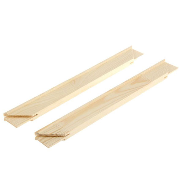 Модульные подрамники российского производства изготовлены из высококачественной сосновой древесины. Дерево, используемое для их изготовления, содержит не более 10% влаги, не имеет сучков, трещин, смоляных пазух. Высота бортика 3 мм.
